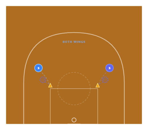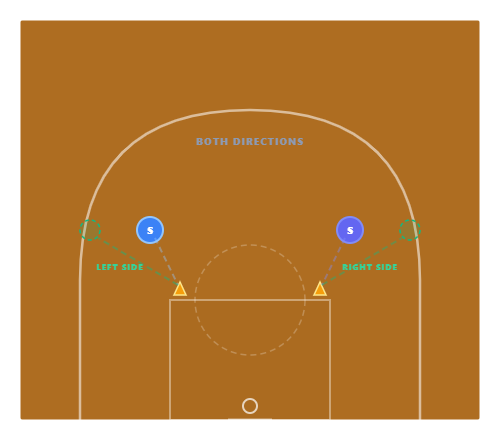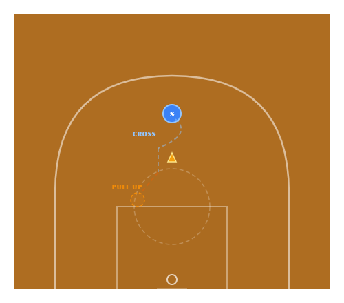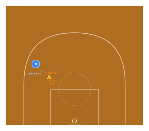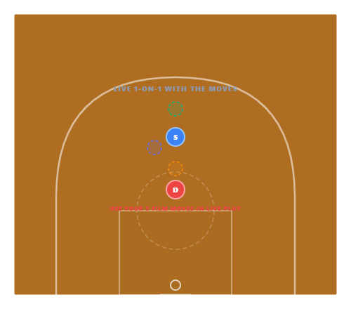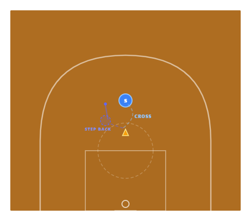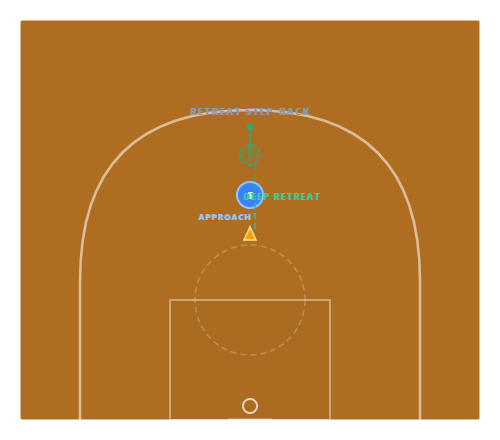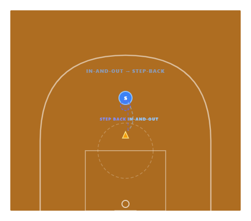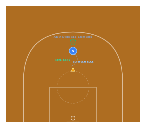 Crossover + Step-Back : Add a crossover before the step-back. Start at the top, crossover left-to-right, one hard dribble, then step back to the left side into a mid-range jumper. The crossover moves the defender laterally; the step-back creates vertical separation. Two directions of deception in one move. 10 makes each direction. This is the DeMar DeRozan signature move.