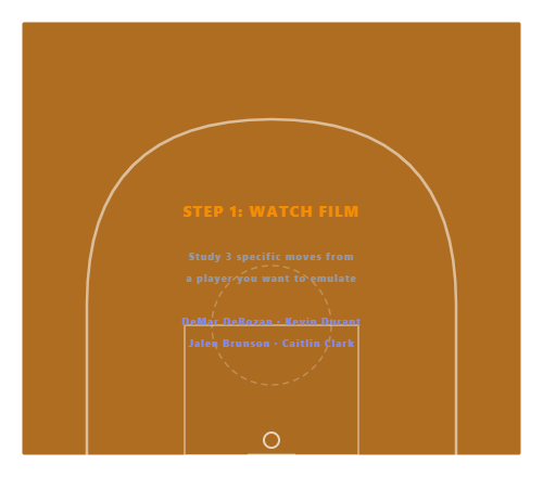 Step 3 — Live 1-on-1: Play live 1-on-1 with one rule: you can ONLY score using the 3 moves you studied from film. No free-lancing, no layups, no plays you already know. Force yourself to use the new moves against a real defender. 10 possessions. Track how many times you successfully execute each move AND make the shot. This is where film study becomes real skill.