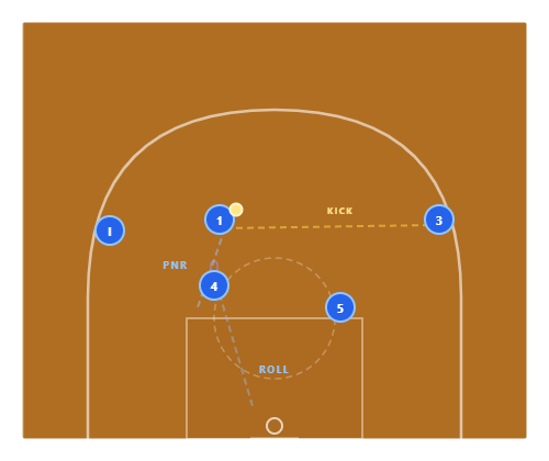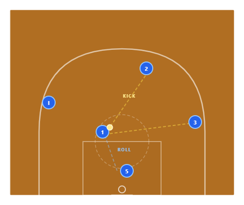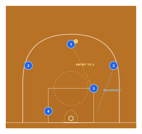 If the slice isn't open, 5 pops after screening and 1 can enter the ball to 5 at the elbow for a mid-range or high-low action. It flows naturally.