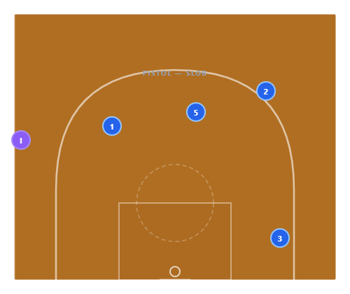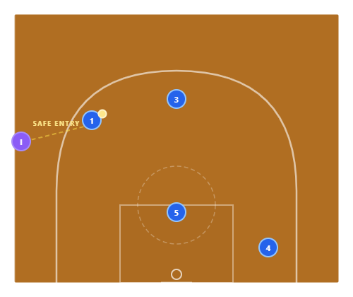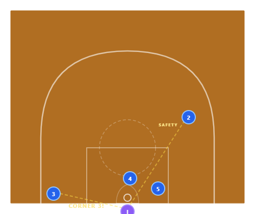 Best in late-game situations when you need a quick, reliable look. The line is fast-hitting — if the first option is open, the play is over in 1 second.