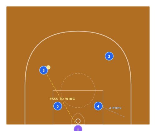 If the defense cheats toward the basket, the pop-out to the wings becomes the primary option. The stack is self-adjusting — wherever the defense cheats, the opposite action is open.
