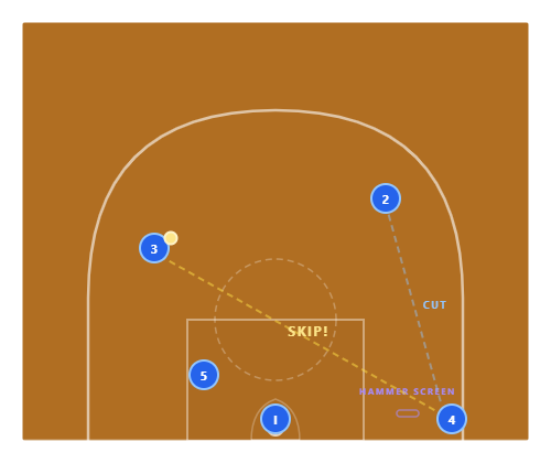 The "hammer" concept is one of the most efficient plays in modern basketball. The corner three after a hammer screen is one of the highest-PPP shots available.