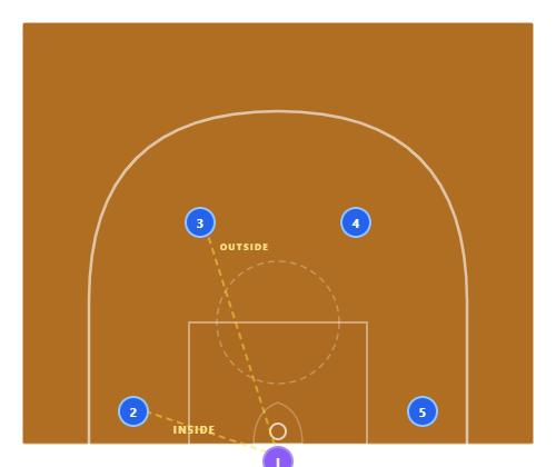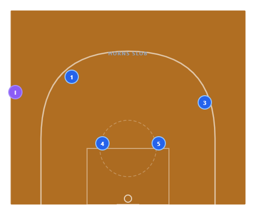 The Horns SLOB transitions seamlessly from a dead ball into your primary half-court offense. The defense can't differentiate between your inbound play and your regular offense — which means they can't prepare for a specific look.