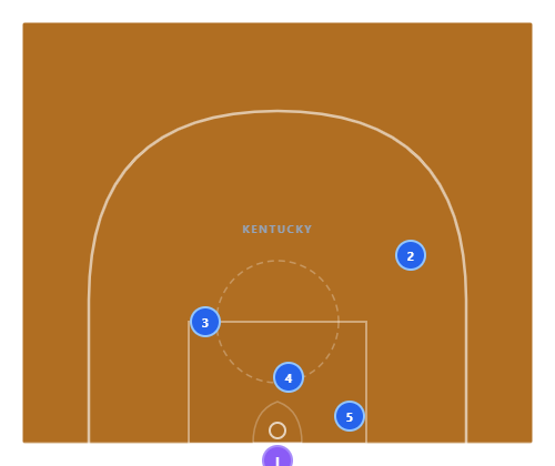 Named after Calipari's Kentucky but run by dozens of programs. The double-screen corner-three concept is universal.