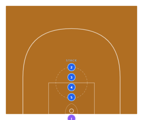 The stack creates four simultaneous screens. Defenders can't fight through without losing their man. Even if the defense switches, someone ends up with a size or speed mismatch near the rim.